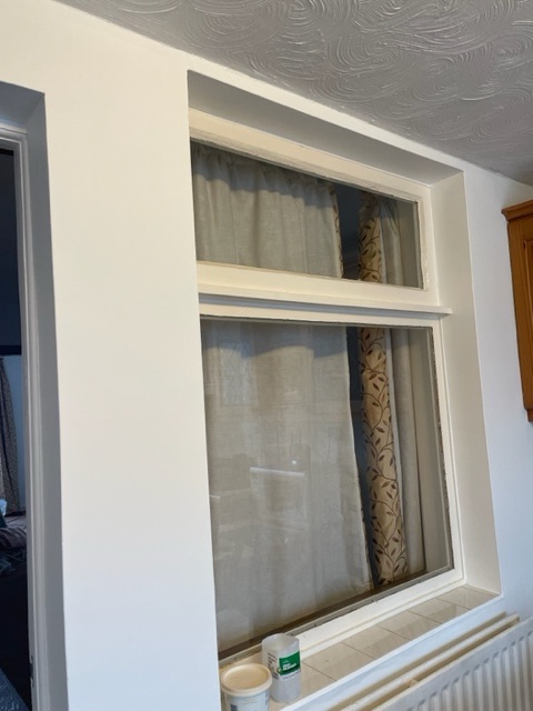 Much the same for the kitchen, the walls were painted and the cabinets and window frames were deep cleaned. Fresh silicone was applied around the countertops and the glass from the window between this room and the dining room was removed and replaced with toughened glass to comply with safety standards
